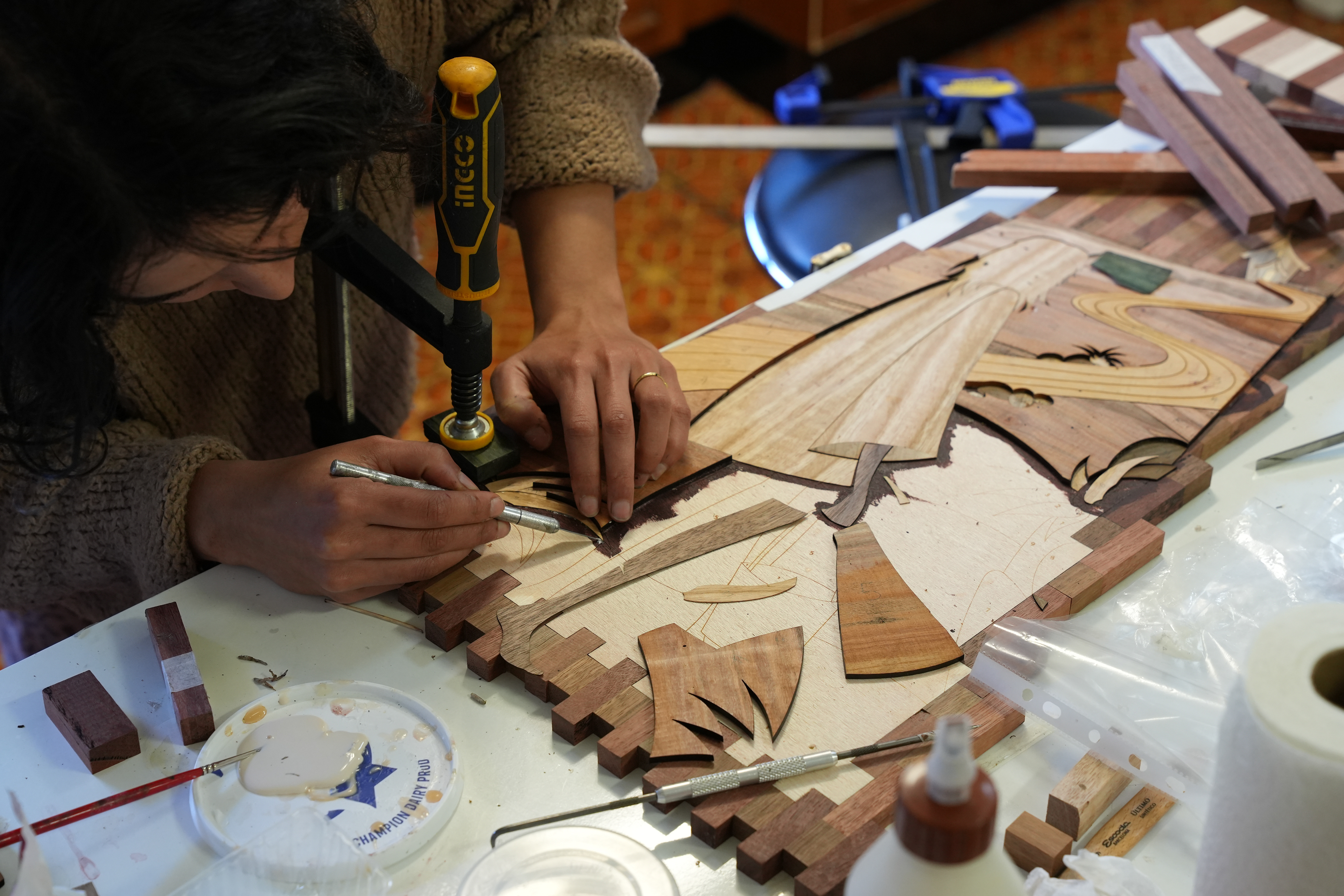 Constructed from reclaimed spotted gum, blue gum, jarrah, myrtle, sassafras, Huon pine, Victorian ash, blackbutt, blackwood and Queensland walnut.
